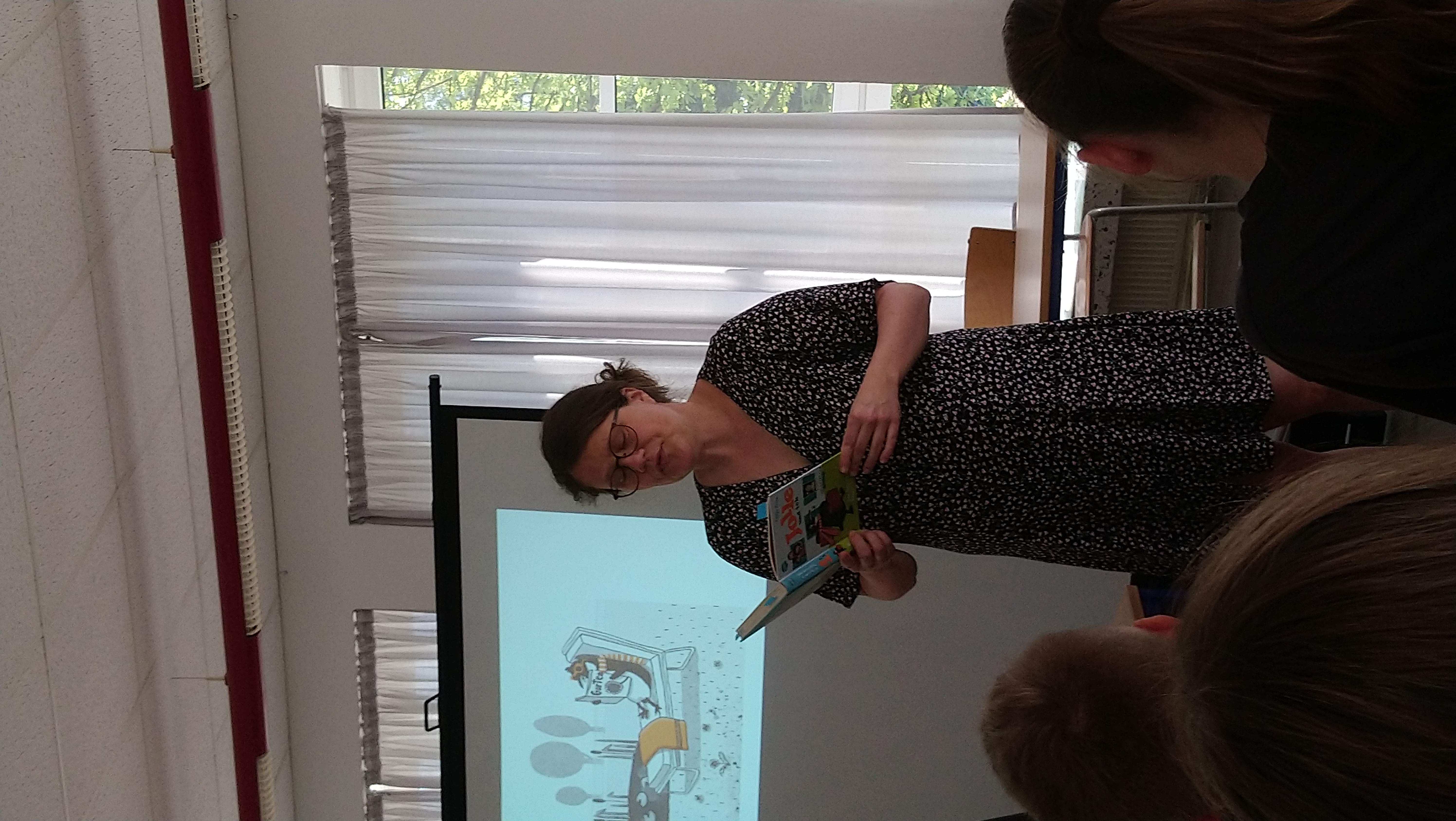 Nachdem Frau Frixe aus ihren Büchern kurze Abschnitte vorgelesen hat und die Kinder einen erfrischenden Einblick in das Leben von Thea und Jolle bekommen haben, durften die Schüler die Autorin mit all ihren Fragen löchern.