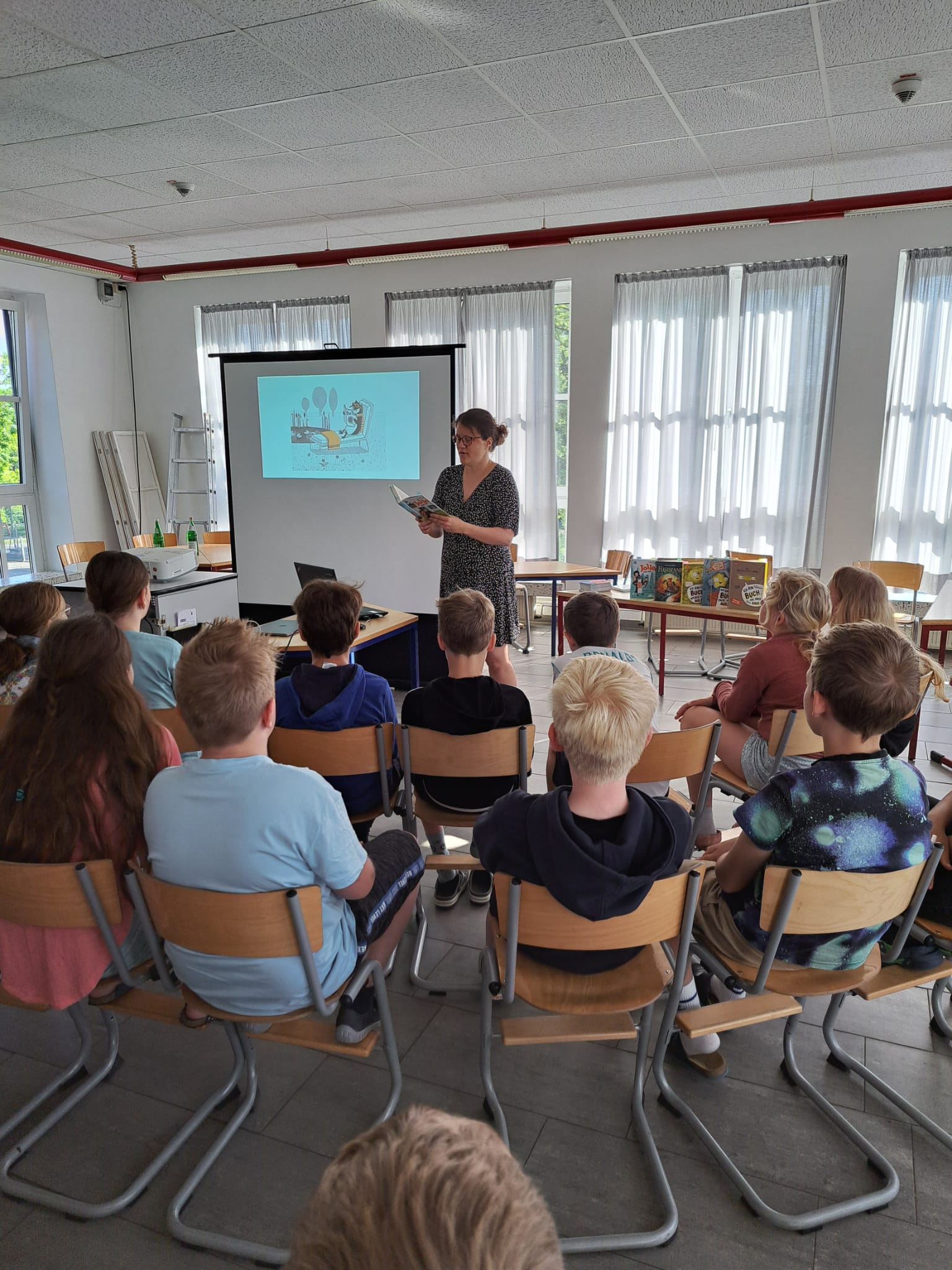 Die bekannte Kinderbuchautorin Katja Frixe besuchte die Marienschule Seppenrade und las aus ihrem Buch: "Jolle und ich" vor. Die Kinder der vierten Klassen hörten gebannt zu.
