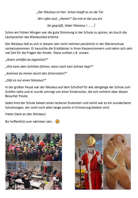 Der Förderverein spendete allen Kindern und Mitarbeitern der Grundschule einen Stutenkerl zum Nikolaustag