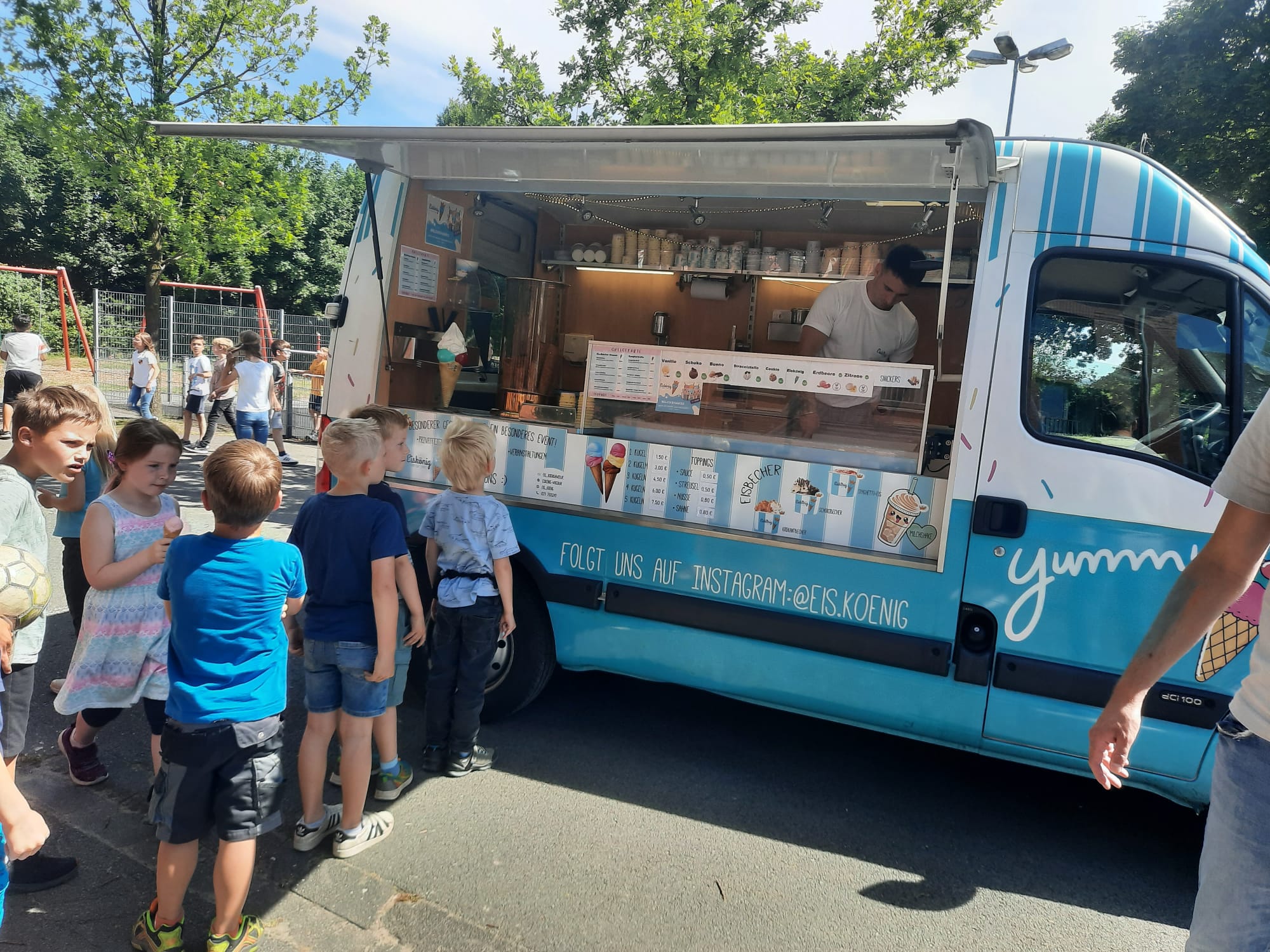 Es klingelte und auf den Schulhof fuhr ein Eiswagen.